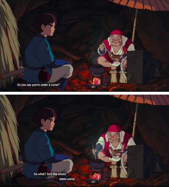 If you got a chance to watch Princess Mononoke over the weekend, I think you’ll see what I’m getting at through a few quotes I pulled out.